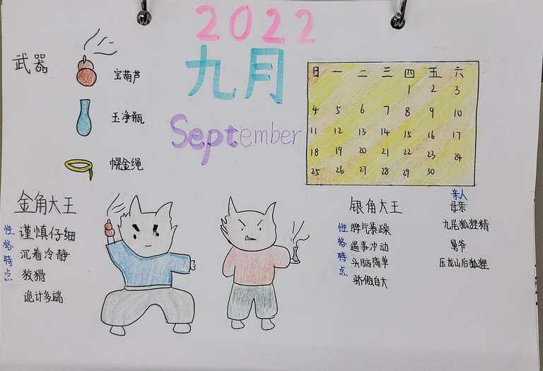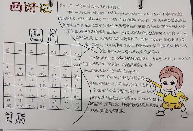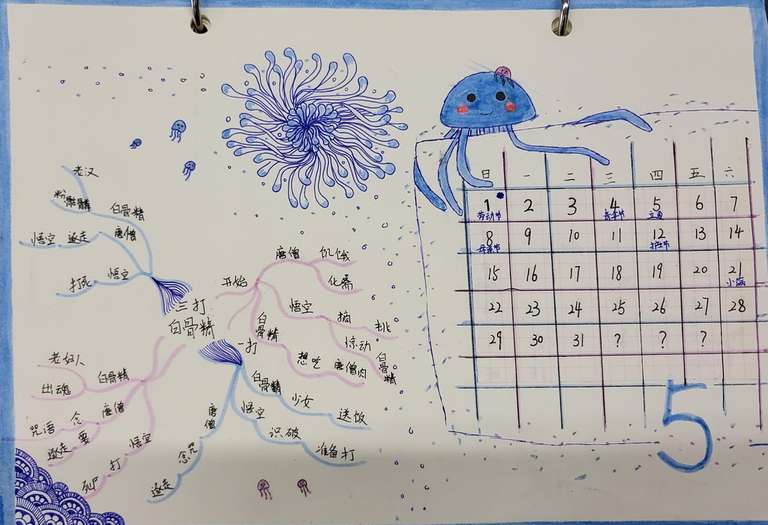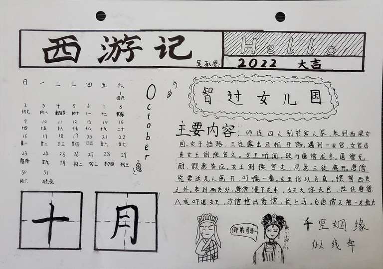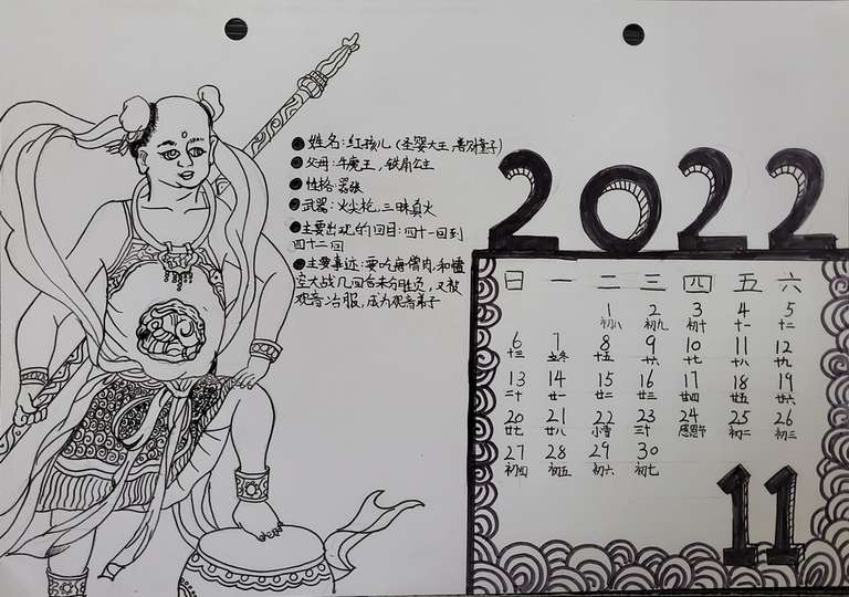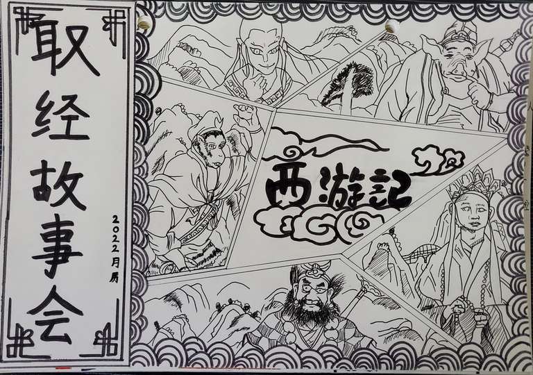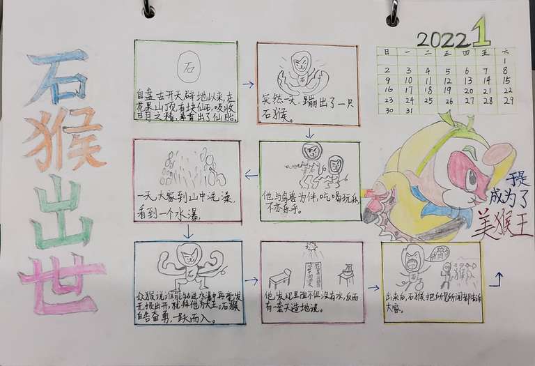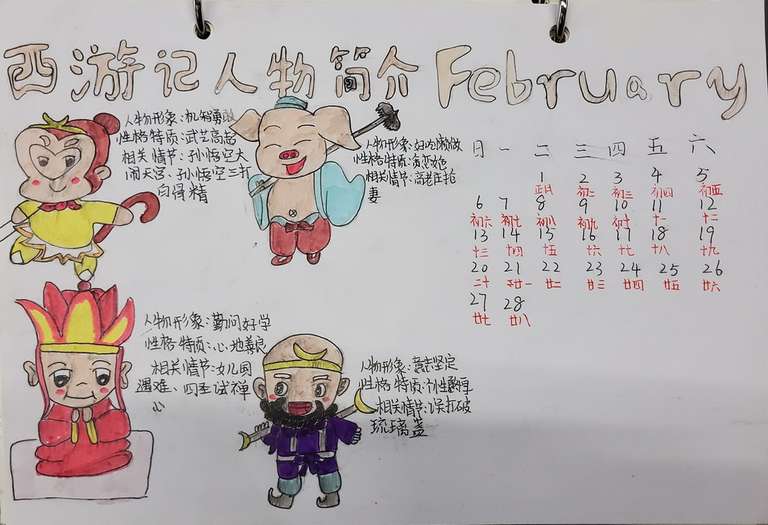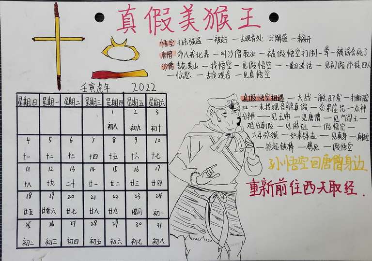 阅读活动极大调动了学生的阅读积极性,大家纷纷表示意犹未尽。于是,在相关活动基础上,我们共同探讨定下《取经故事会2022台历》的衍生活动安排。最后在所有作品中,选择优秀作品组成四份2022台历,这里展示其中最精彩的两份。