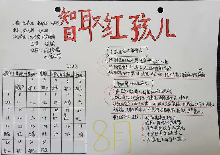 8月智取红孩儿、9月车迟国斗法、10月智过女儿国、11月红孩儿